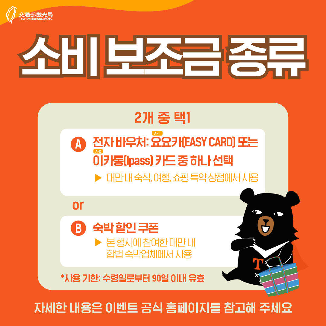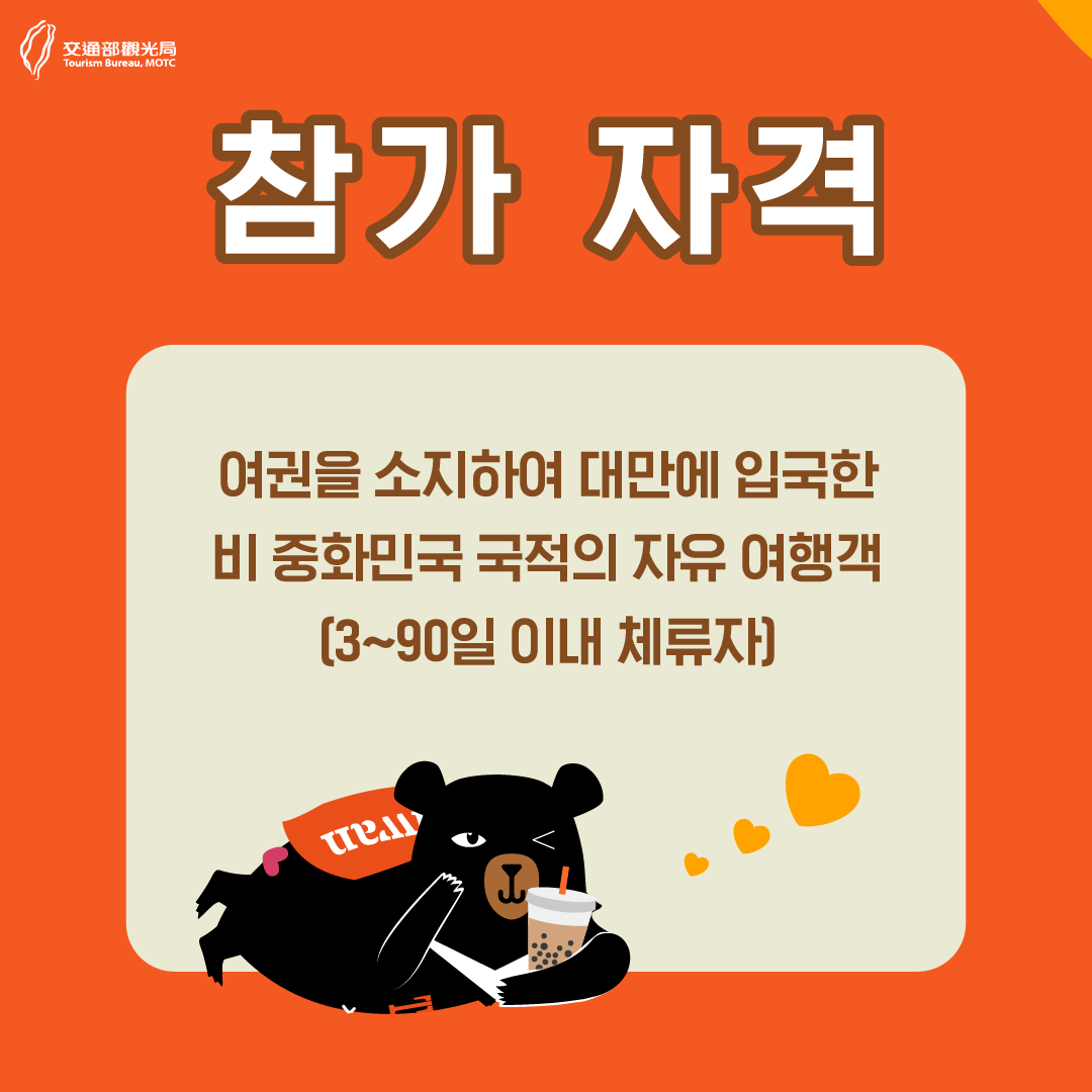 - 해외 여행객: 대만 여행 지원금은 대만 외부에서 오는 해외 여행객을 대상으로 합니다. 대만 거주자는 이 지원금을 받을 수 없습니다.