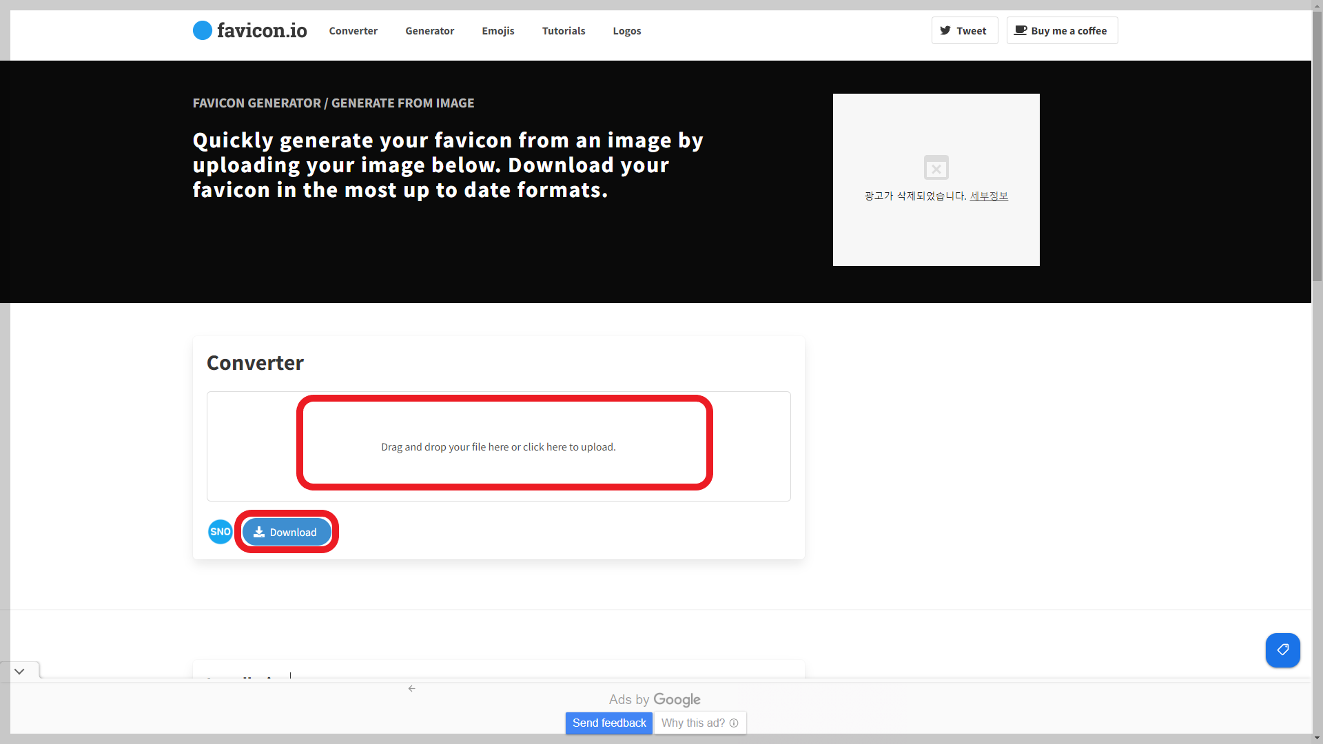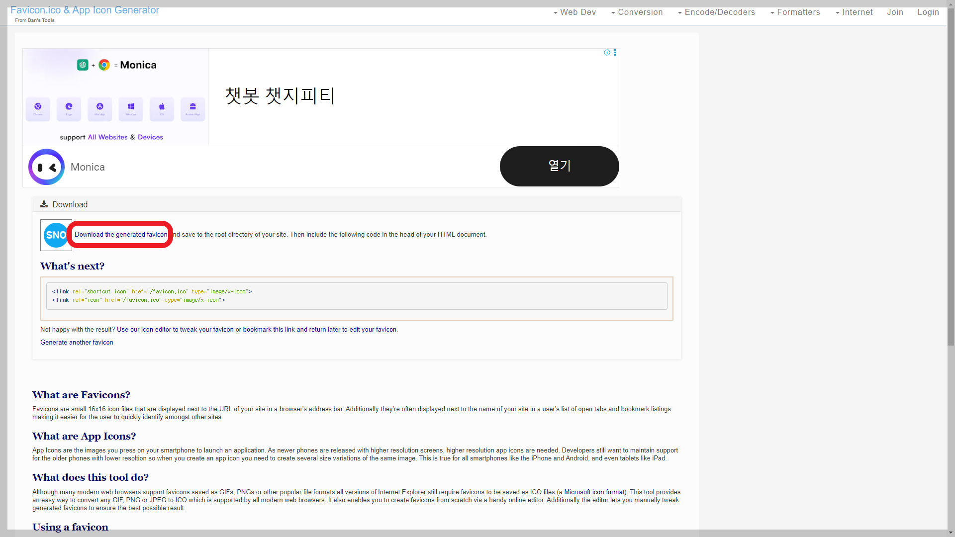 - "Download the Generated Favicon"을 선택해 다운로드